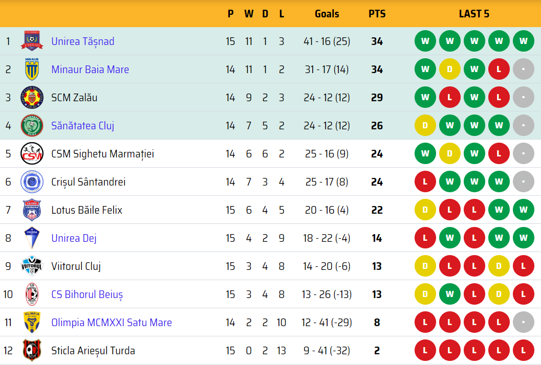 Unirea Dej – CS Bihorul Beiuş 3-2 (2-0). Alex Oltean 11, Andrei Istrate 18, Octavian Ursu 86 / Rareș Uțiu 62 autogol, Robert Turcan 71