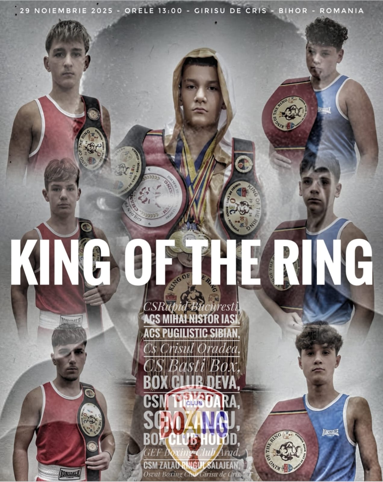 Gala „King of the ring 2025” este organizată de Ionel Oșvat, multiplu medaliat la naționale la categoria grea și campion al Olandei, originar din Girișu de Criș, în parteneriat cu Primăria Girișu de Criș și Consiliul Local. La gală sunt așteptați peste 80 de pugiliști de la cluburile CS Rapid București, ACS Mihai Nistor Iași, ACS Pugilistic Sibian, Box Club Deva, CSM Timișoara, SCM Zalău, Gîrleanu Boxing Gym, GEF Boxing Club Arad, CSM Zalău Ringul Sălăjean, Osvat Boxing Club Girișu de Criș, CS Crișul Oradea, CS Basti Box Salonta, ACS Moga Răzvan Oradea și Box Club Holod.