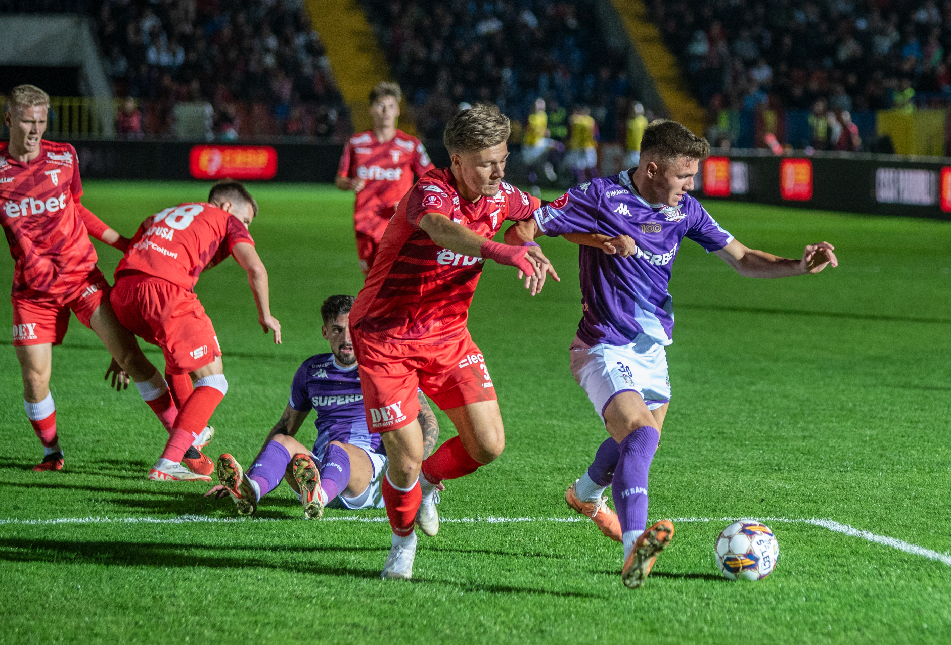 Claudiu Petrila (Rapid) a contribuit la deschiderea scorului în minutul 12 când a pornit vijelios pe contraatac pe partea stângă, a centrat în careu și Funsho a înscris pentru 1-0.