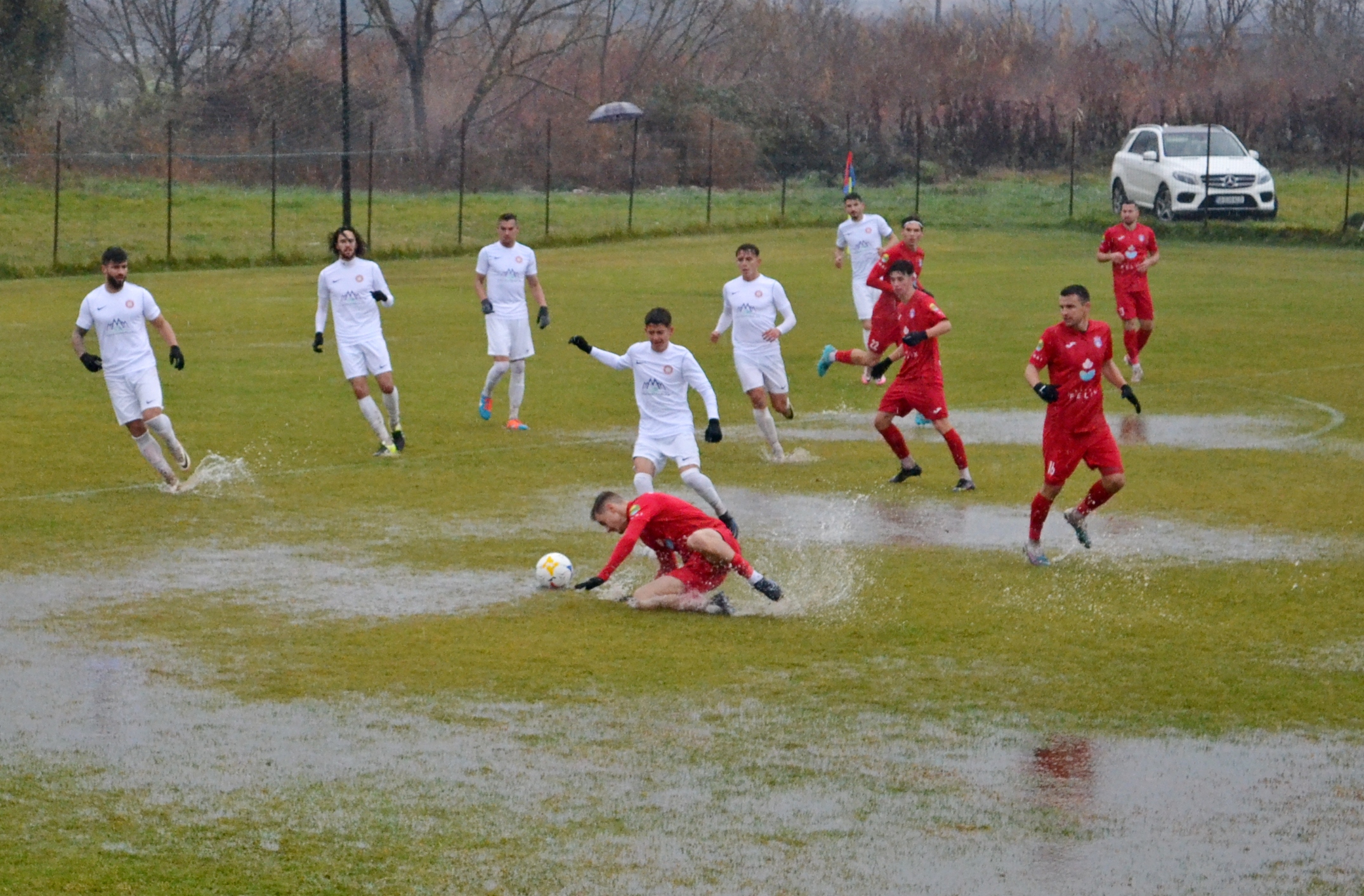 A rezultat un meci al hazardului între vecinele de clasament Lotus Băile Felix și Viitorul Arad. Nu s-a putut pasa, nu s-a putut construi, practic a fost o luptă…pe apă, nu fotbal. Situațiile de gol au fost rare, iar prima a aparținut gazdelor însă Negru a luftat la 7 metri și a ratat întâlnirea cu balonul în minutul 13. Pe un asemenea teren, interpretarea duelurilor a fost la latitudinea centralului, care a considerat fault intrarea lui Oltean asupra lui Gavrilă și a indicat penalty (30). Fundașul Cristi Munteanu, fost jucător la FC Bihor, ajuns acum la 44 de ani, a transformat lovitura de pedeapsă (0-1). Pe finalul reprizei, Blăgea a executat un corner de pe partea dreaptă și Sala a șutat din prima, de la 8 metri, puțin pe lângă bară.