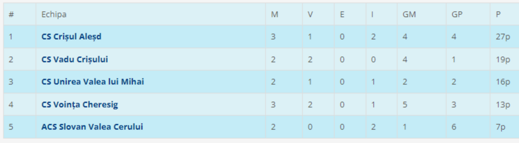 Etapa viitoare (sâmbătă 13 aprilie): Unirea Valea lui Mihai – CS Vadu Crișului (ora 17:00), Crișul Aleșd – Slovan Valea Cerului (ora 17:00). Voința Cheresig va sta.