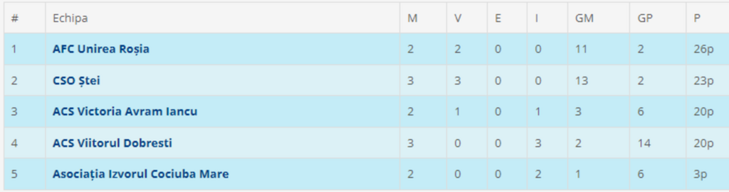 Etapa viitoare (duminică, 14 aprilie, ora 17:00): Viitorul Dobrești – Izvorul Cociuba Mare (ora 14:00), Victoria Avram Iancu – Unirea Roșia (ora 17:00). CSO Ștei va sta.