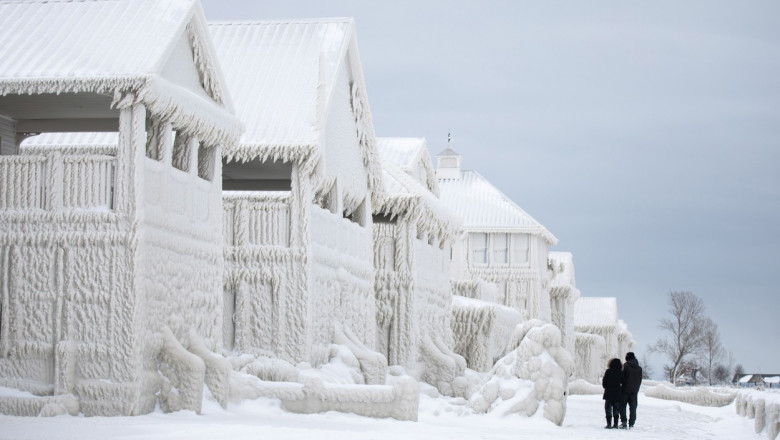 Viscolul și vântul puternic au creat valuri uriașe pe lacul Erie. Apa a fost împinsă spre țărm de rafalele de vânt, iar din cauza temperaturilor scăzute, picăturile de apă au înghețat pe clădiri, au explicat meteorologii.