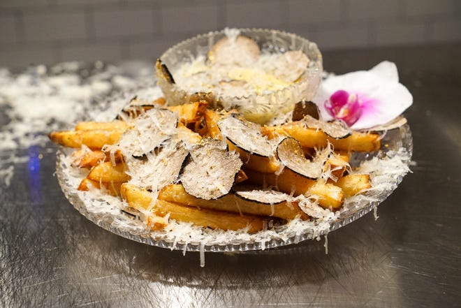 Nu se foloseşte ketchup banal pentru „Crème de la Crème Pomme Frites”. Se foloseşgte Pecorino Tartufello delle Crete Senesi, fulgi italieni de trufă neagră şi sare Guérande. Însoţesc preţioşii cartofi prăjiţi un sos Mornay făcut cu lapte de la vacă hrănită doar cu iarbă, unt de trufă neagră, dar şi brânză Gruyere elveţiană.