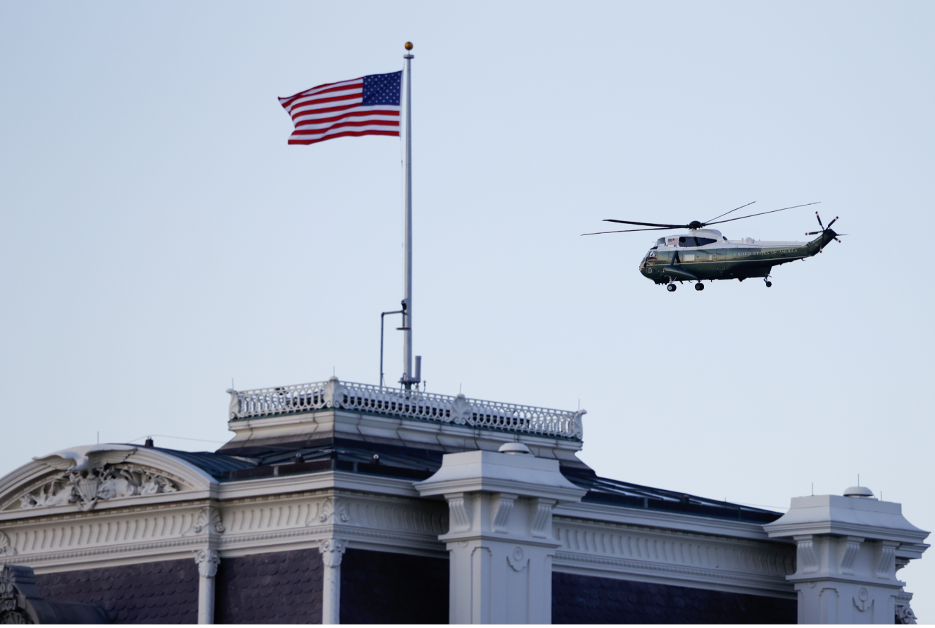 Elicopterul a aterizat in Maryland la Baza aeriană Andrews unde s-a desfasurat o mică ceremonie.