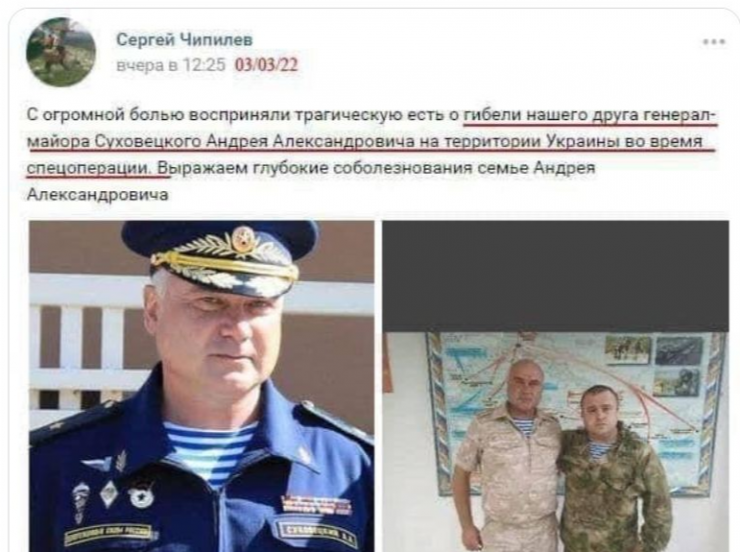 Sursa citată mai notează că până în prezent armata rusă nu a confirmat decesul generalului Andrei Suhovetsky, dar Vladimir Putin a declarat într-o ieșire publică pierderea unui general.