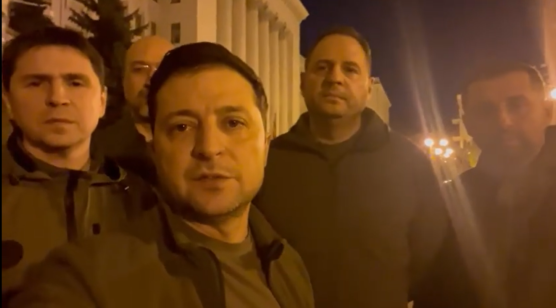 Volodimir Zelensky a înregistrat un mesaj video pe strada Bankova din Kiev, alături de alți oameni de stat din Ucraina. Astfel, Zelensky a infirmat zvonurile lansate de propagandiştii ruşi despre presupusa sa evadare din oraş. [eadvert] Sursa video: Ministerul Apărării din Ucraina „Suntem cu toții aici să ne aparăm independența”, a spus președintele Ucrainei. Sursa: … Continue reading Președintele ucrainean Volodimir Zelensky, mesaj filmat pe o stradă din Kiev, alături de alți miniștri: „Suntem cu toții aici să ne aparăm independența”