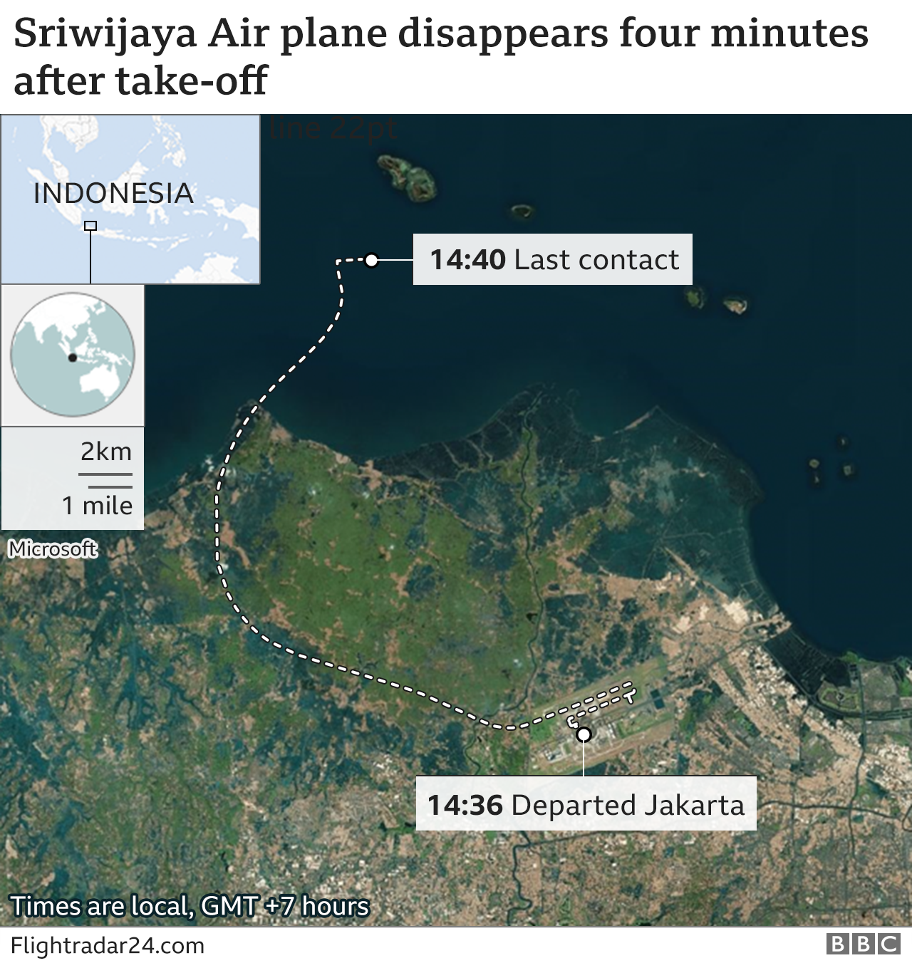 Potrivit Hotnews.ro, Boeingul 737-500 cu 62 de persoane la bord a dispărut de pe ecranele radar la 4 minute după decolare. Prăbușirea acestuia este primul eveniment aviatic major după cel din 2018, când un Boeing 737 Max al Lion Air a căzut în Marea Java, fiind ucise 189 de persoane.