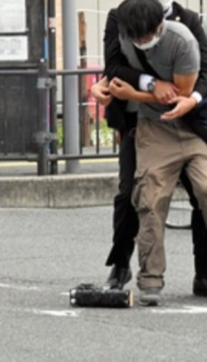 Presa niponă susține că arma cu care a fost împușcat este una confecționată chiar de atacator, armele de foc fiind interzise să fie deținute de către populație. Din imaginile apărute pe internet, se poate observa arma artizanală cu două țevi care este ținută în mână de atacator.