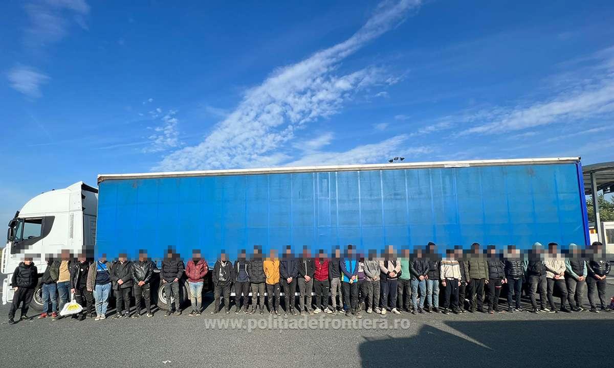 Tot în ultimele 24 de ore, la vama Turnu, din județul Arad, în timpul efectuării controlului unui TIR înmatriculat în România, condusă de un cetățean român în vârstă de 35 de ani, polițiștii au descoperit în compartimentul destinat odihnei șoferului, patru persoane. În urma cercetărilor, polițiștii au stabilit că cei patru sunt cetățeni din Nepal și Bangladesh, cu vârste cuprinse între 23 și 36 de ani.