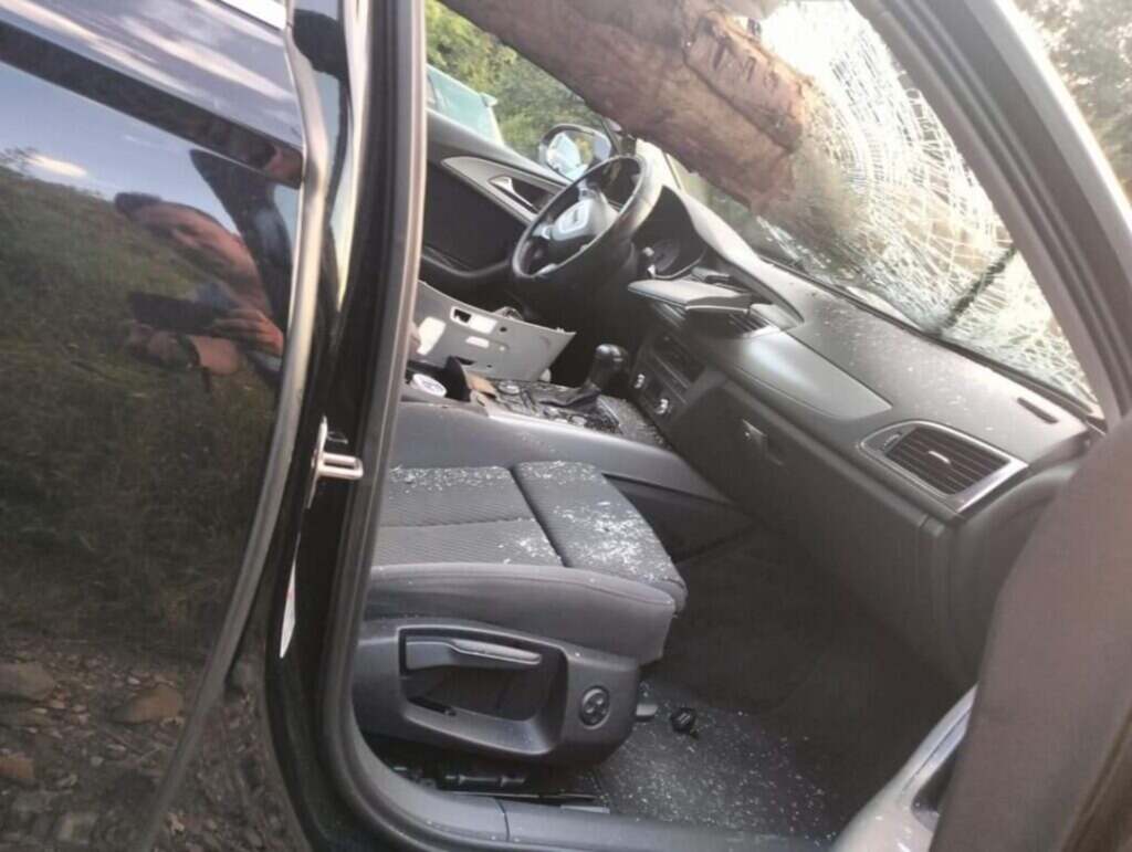 Accidentul a avut loc în localitatea Teliu. Camionul, înmatriculat în Covasna, avea o încărcătură de peste 40 de tone de lemne pe semiremorcă și pe remorca atașată. Buștenii nu erau asigurați cu chingi speciale, iar la un moment dat unul dintre ele a zburat efectiv și s-a înfipt în parbrizul unui autoturism marca Audi, care era înmatriculat în Austria. Bușteanul a pătruns prin parbriz și s-a oprit după tetierele scaunelor din față, scrie brasov.net