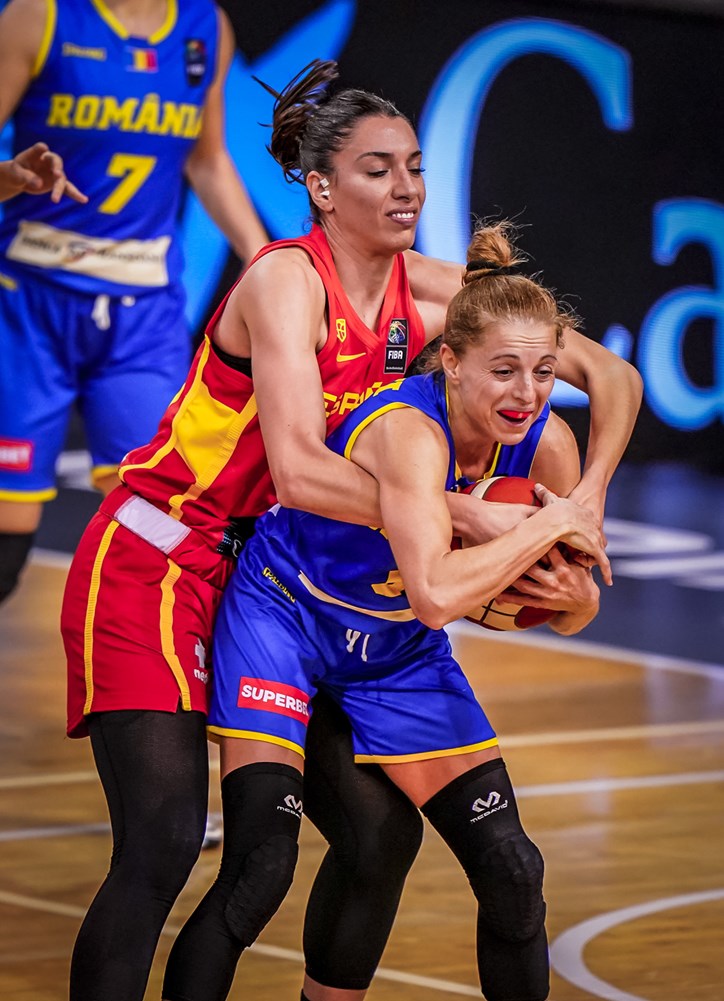 Ibericele au învins cu 107-52 (24-19, 22-8, 24-7, 37-18), având în Maria Conde și Irati Etxarri, ambele cu câte 21 de puncte, principalele marcatoare. Din tabăra României s-au remarcat Florina Stănici – 16 puncte și Ioana Ghizilă – 14 puncte.