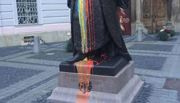 „O persoană de sex masculin ar fi aruncat cu o substanță ce pare a fi vopsea pe statuia înfățișându-l pe Samuel von Brukenthal instalată în Piața Mare din municipiul Sibiu”, a transmis IPJ Sibiu, care a fost sesizat în acest caz de Poliția locală.