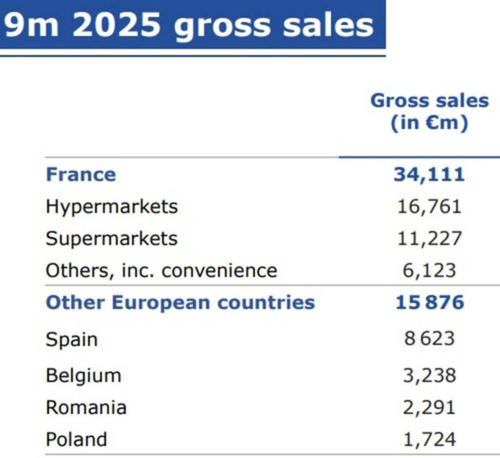 În primele nouă luni ale acestui an Carrefour a raport vânzări de peste 2,2 miliarde de euro în România. De remarcat că deși în Polonia deține aproape de două ori mai multe unități de vânzare, rezultatul din România este cu peste jumătate de miliard de euro mai bun.
