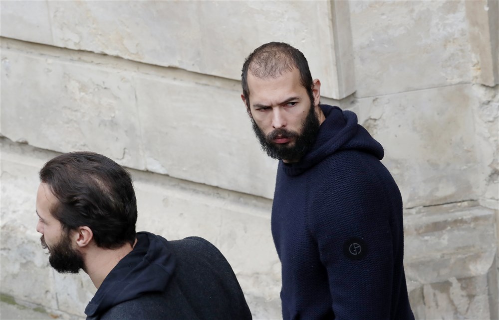 Fraţii Tate, care au cetăţenie britanică, şi cele două tinere complice (Alexandra-Luana Radu şi Georgiana Manuela Naghel) sunt acuzaţi că au constituit un grup infracţional organizat, în scopul racolării, cazării şi exploatării, prin obligarea unor femei la crearea unor materiale cu conţinut pornografic, destinate difuzării contra cost pe site-uri de profil. Din aceste activităţi, ar fi obţinut importante sume de bani.