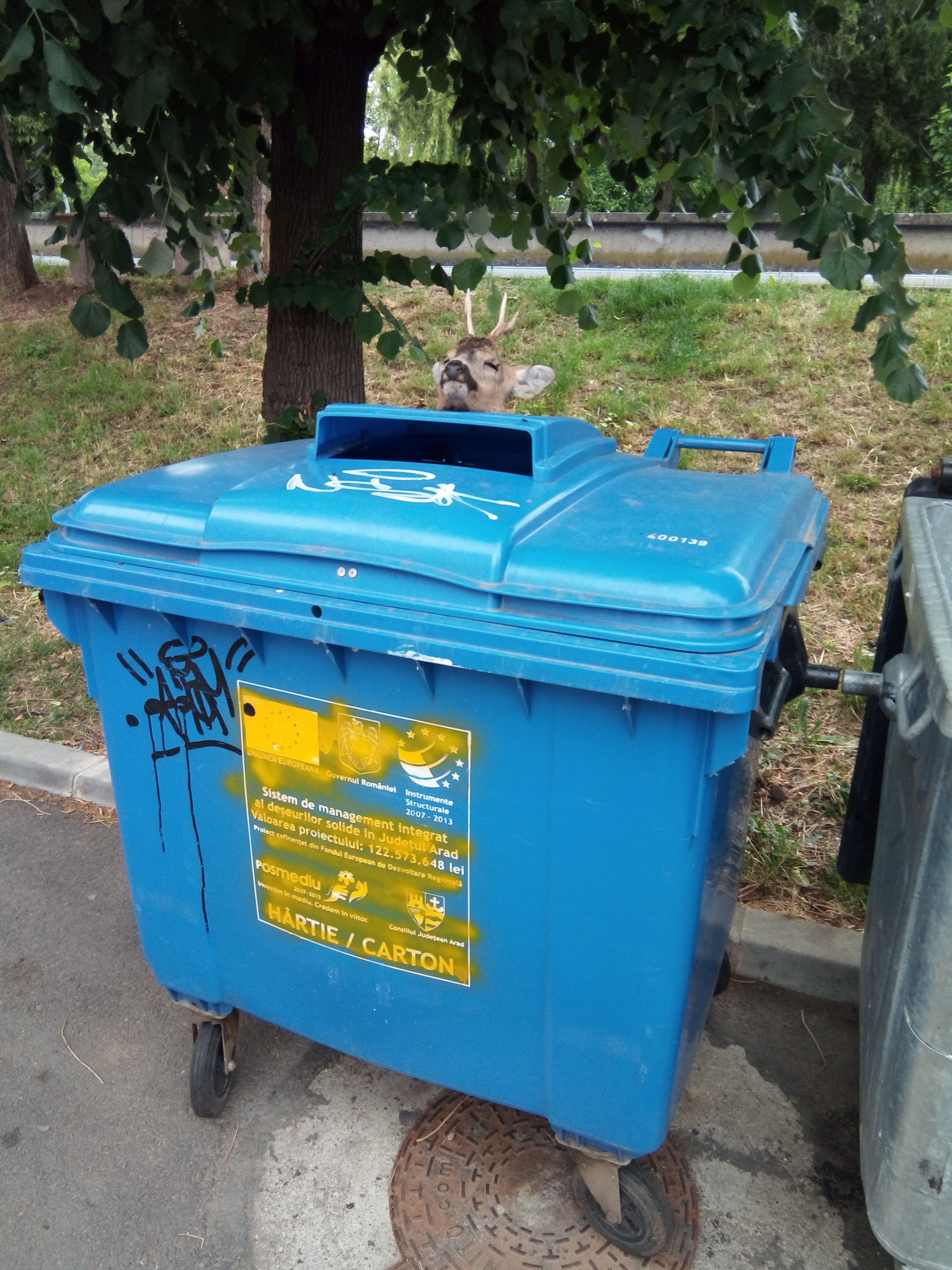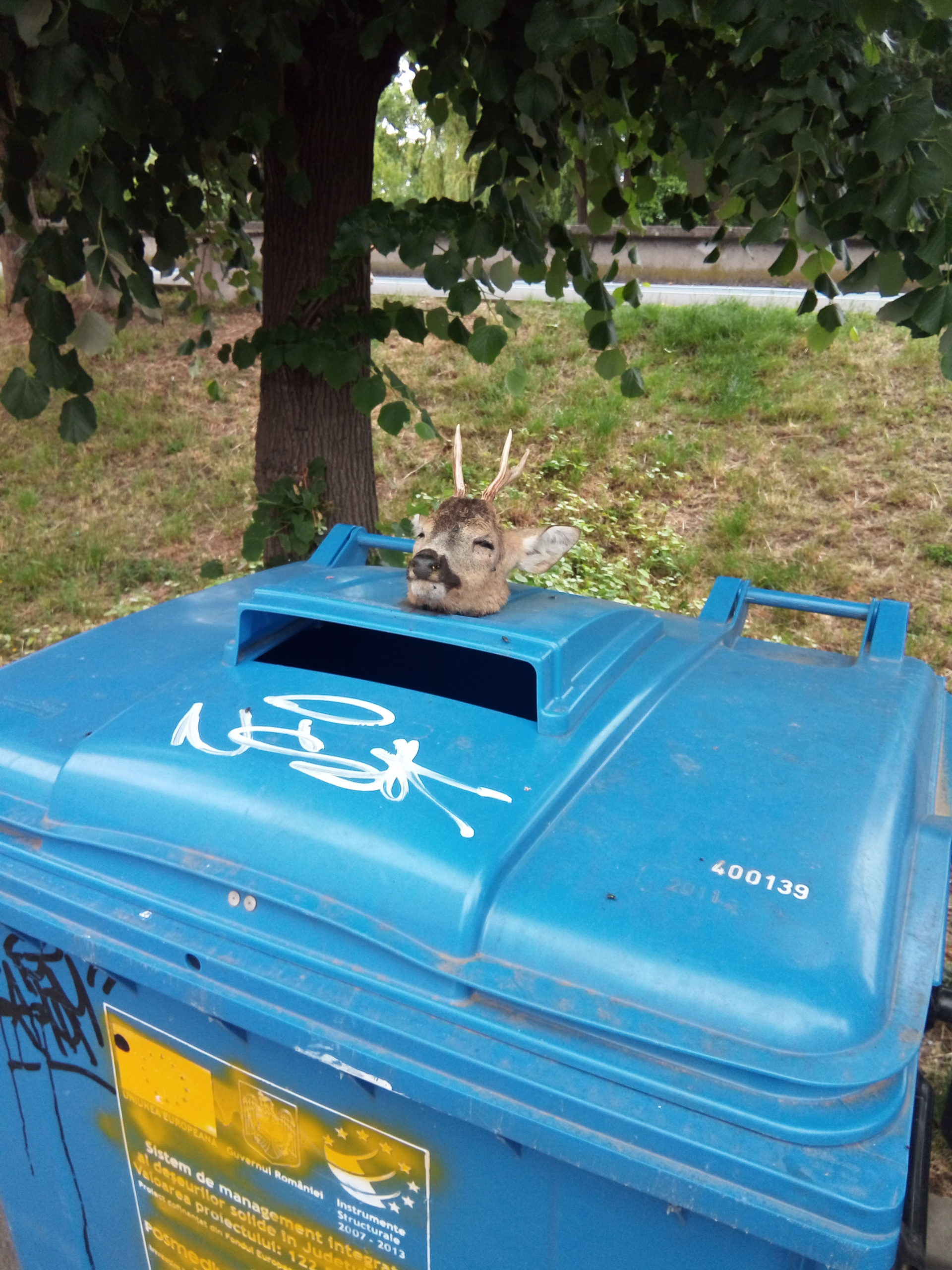 Jurnaliștii publicației ARADON.RO, au fost contactați pe adresa redacției Jurnal arădean/Aradon, de un arădean care a avut parte de o imagine macabră în timp ce se plimba prin oraș. Acesta a observat, siderat, pe capacul unui tomberon aflat în vecinătatea blocurilor de pe strada Toth Șandor, din apropierea Podului Decebal, un cap retezat de căprior. Capul animalului era așezat chiar pe mijlocul tomberonului, ca și cum era pregătit pentru o expoziție macabră.