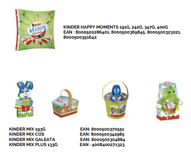 Agenția a precizat ulterior că au fost implicate ouăle de ciocolată Kinder, dar nu a precizat dacă problema se referă exclusiv la aceste produse.