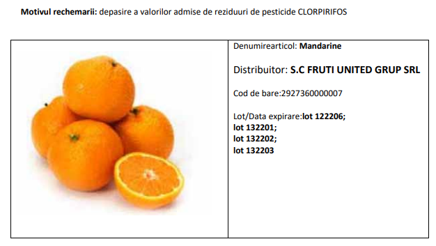 Mandarine cu pesticide la Metro