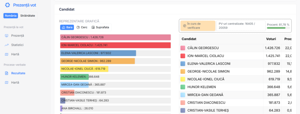 Răsturnare de situație colosală! Independentul Călin Georgescu îl depășește pe Marcel Ciolacu după ce s-au numărat peste 81% dintre voturi.