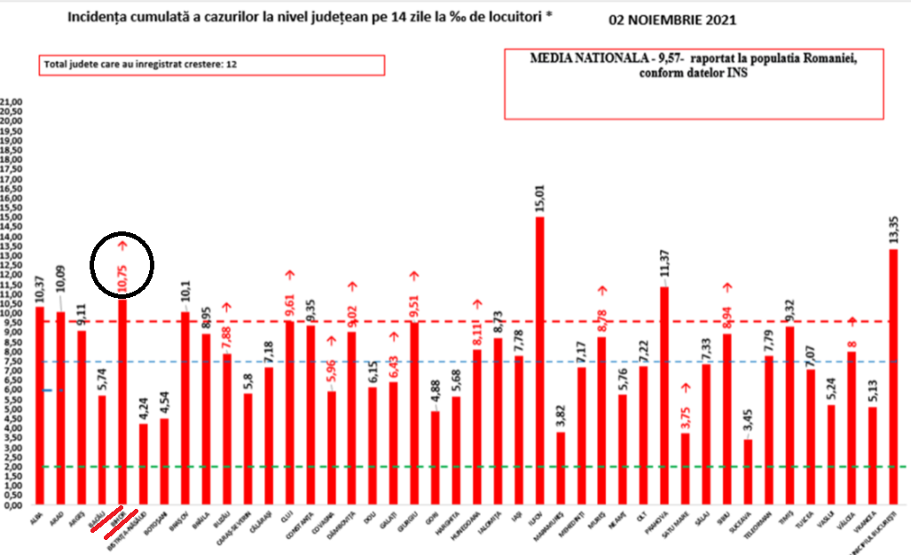 Astfel s-a înregistrat un nou record negativ al deceselor înregistrate într-o singură zi, de la debutul pandemiei și până în prezent. Din punct de vedere al ratei de infectare, Bihorul este pe locul 4 la nivel național, cu incidența de 10.75‰, fiind depășit doar de Ilfov (15.01‰), Prahova (11.37‰) și București (13.35‰).