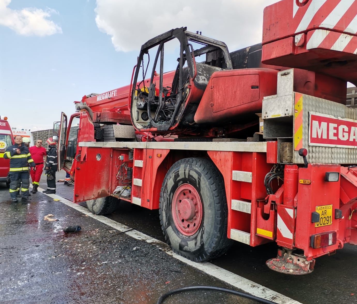 Centrul INFOTRAFIC din Inspectoratul General al Poliției Române informează că pe „Autostrada A1 Deva-Nădlac, la kilometrul 541, mun. Arad, jud. Arad, un autovehicul a luat foc în mers, iar șoferul a coborât să-l stingă, moment în care a fost lovit de conducătorul unui autocamion, care nu a frânat la timp.