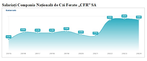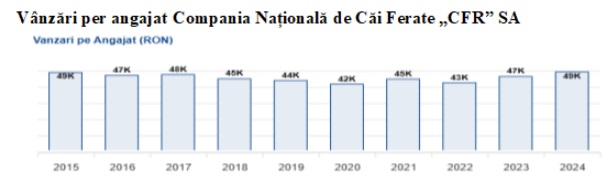 Aceste concluzii reies din datele financiare analizate pe platforma RisCo.ro. Potrivit ultimei raportări, Compania Națională de Căi Ferate „CFR” SA este cel mai mare angajator din România, cu 24.493 de salariați. În ciuda dimensiunii forței de muncă, compania a înregistrat o cifră de afaceri de 1,2 miliarde lei și o pierdere netă de 432 milioane lei. Indicatorii de productivitate arată vânzări de aproximativ 49.000 lei per angajat, în timp ce pierderea per angajat a fost de 18.000 lei. CFR este deținută integral de statul român, prin Ministerul Transporturilor.