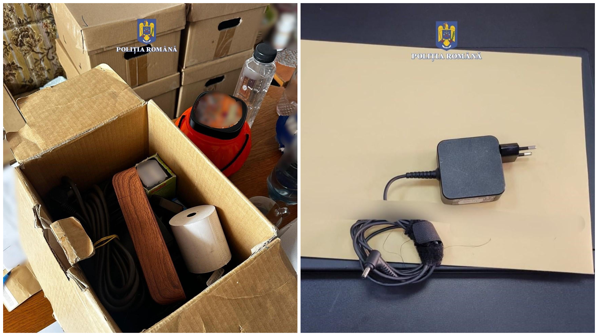 „În urma celorlalte 3 percheziții domiciliare, au fost descoperite și ridicate două telefoane mobile, un laptop, o casă de marcat electronică – fiscală, role de hârtie termică, utilizate la casa de marcat fiscală, bonuri fiscale și ștampile cu datele de identificare ale societății din municipiul București.
