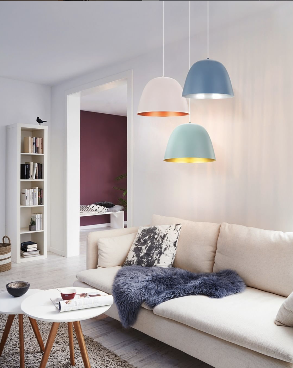 Un design de succes îmbină numeroase surse de lumină la niveluri diferite. Încearcă o iluminare în mai multe straturi cu pendule și cu lămpi de podea.