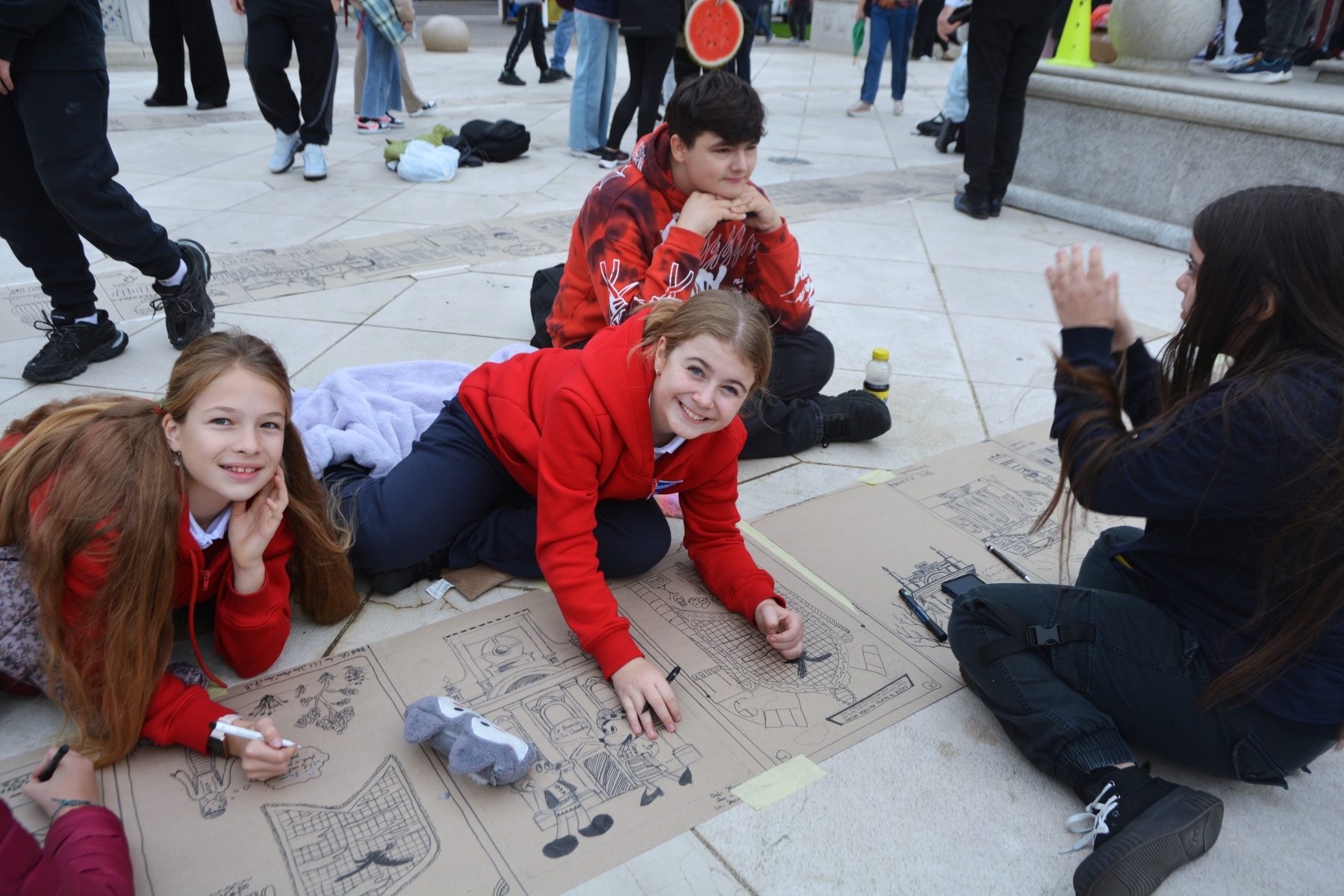 La finalul realizării benzii desenate, momentul a fost imortalizat printr-o filmare cu drona, în aplauzele participanţilor, după care copiii s-au regrupat în faţa scenei mari din Piaţa Unirii.