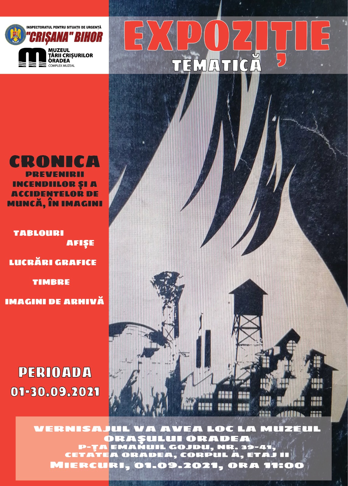 Evenimentele vor avea loc miercuri, 1 septembrie. Vernisajul expoziției foto, intitulată „CRONICA prevenirii incendiilor și a accidentelor de muncă, în imagini”, va avea loc de la ora 11:00, la secția Muzeul Orașului Oradea, din cadrul Muzeului Țării Crișurilor, în incinta Cetății Oradea, corpul A, etaj II, strada Piața Emanuil Gojdu nr. 39-41.