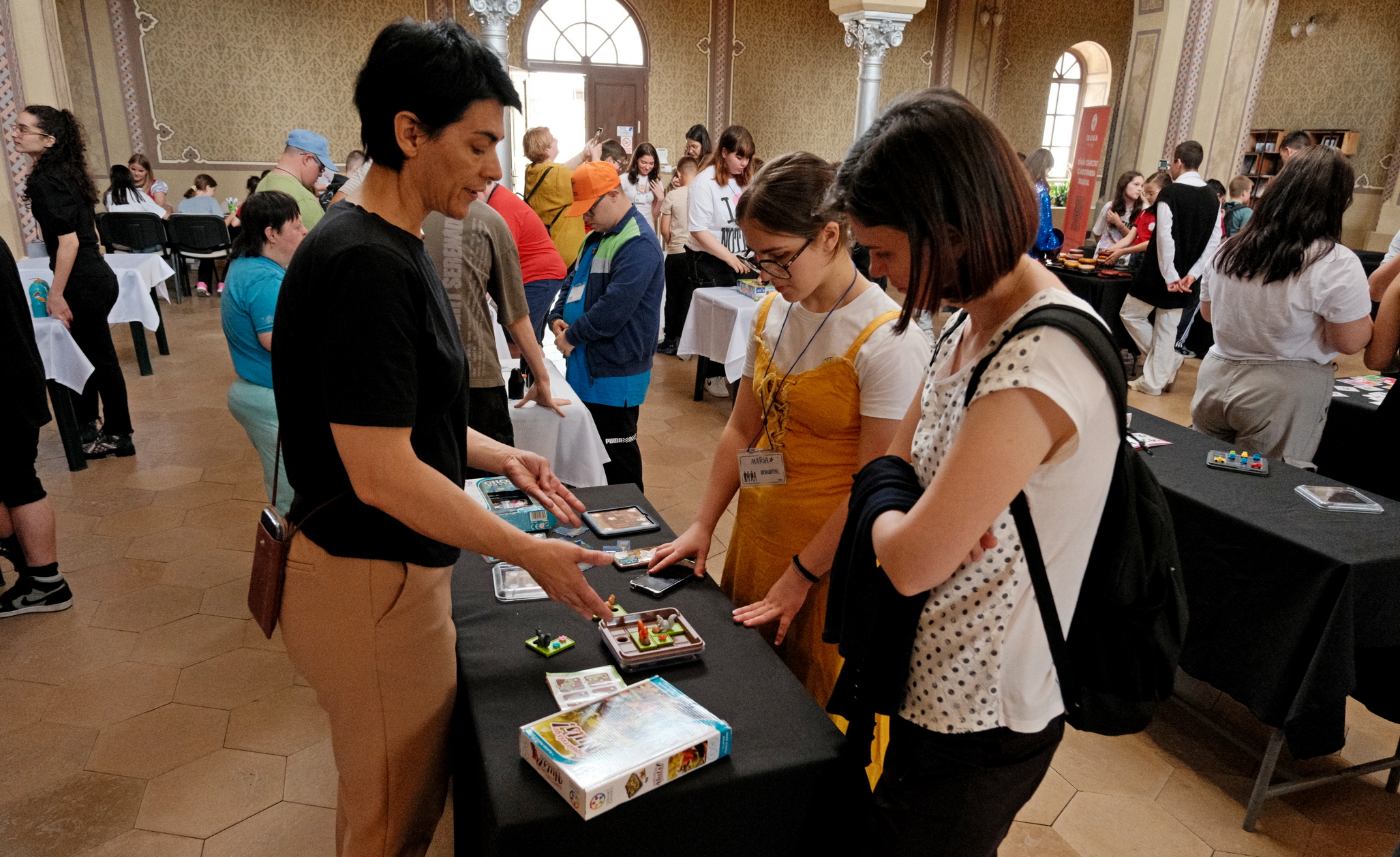 „Caravana cu Jocuri este un festival dezvoltat de Happy Color România împreună cu parteneri. Aici, la Oradea, suntem la a treia ediţie şi suntem în parteneriat cu Oradea Heritage, şi cu un partener puternic pe partea de ateliere, Cătunul Verde. Vă aşteptăm pe durata a patru zile la o mulţime de activităţi interesante care sunt menite să adune familii, părinţi cu copii. Sunt multe jocuri educative, jocuri de societate, jocuri din categoria şahului. Suntem împărţiţi pe patru zone de vârstă. Avem jocuri pentru copii de 2-4 ani, pentru copii de 5-6 ani, apoi pentru 7-8 ani, dar şi pentru adolescenţi şi adulţi, de la 8 la 89 de ani. Pe lângă jocuri avem o mulţime de activităţi interesante, ateliere de creaţie alături de partenerii noştri. Pe lângă Cătunul Verde îi avem alături pe cei de la Inspectoratul Judeţean de Poliţie Bihor, Brigada Antidrog, CPC Bihor”, precizează Valentin Mihai, managerul proiectului Caravana cu Jocuri.