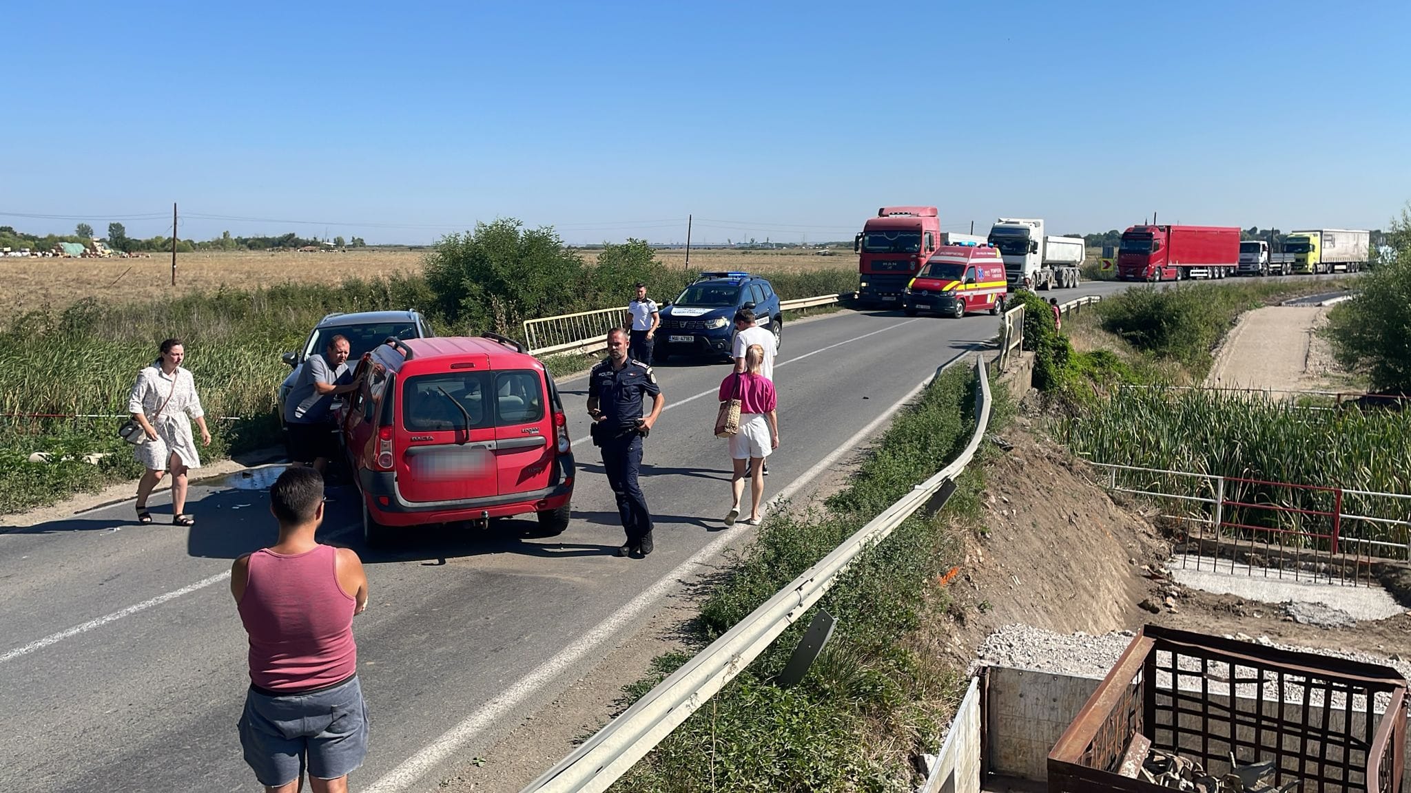 În prezent, traficul este blocat, iar polițiștii de la Serviciul Drumuri Naționale și Europene continuă cercetările la fața locului pentru a stabili cu exactitate cauzele și împrejurările producerii accidentului.