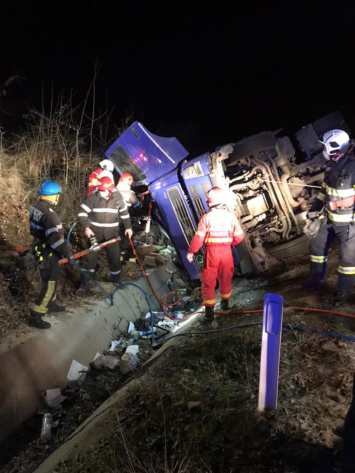 „Ajuns la locul evenimentului, echipajul de descarcerare, a acționat pentru extragerea șoferului rămas captiv în cabina capului tractor, operațiune finalizată în cca. 20 de minute de la sosirea la locul intervenției. Din nefericire, bărbatul descarcerat, a decedat, din cauza leziunilor incompatibile cu viața, decesul fiind declarat de către medicul prezent la fața locului”, transmite căpitan ISU Crișana, Andrei Rotaru.