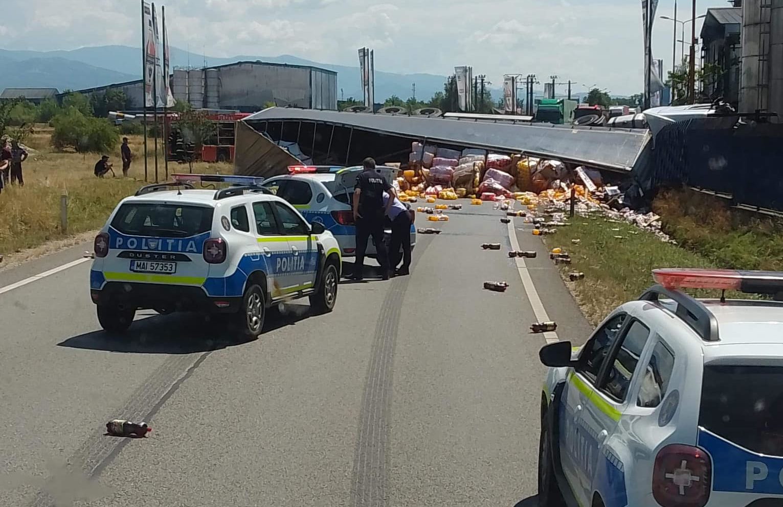 Accidentul dintre un camion încărcat cu sucuri European Drinks s-a soldat că rănirea gravă a unui bărbat de 31 de ani, din localitatea clujeană Baciu.