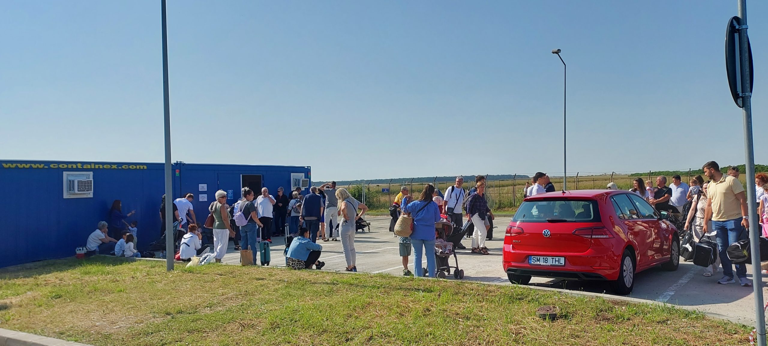 „Ar trebui refăcute multe lucruri înăuntru. Nu am așteptat foarte mult la Imigrări. Dar căsuțele sunt foarte mici, nu este aer înăuntru, se simte miros de baie. În rest a fost ok. A mers repede, dar probabil din cauză că a venit doar un avion. Nu știu cum e când vin mai multe”, ne-a declarat o orădeancă. Ea aștepta afară din container, împreună cu copiii, pe când soțul se înghesuia împreună cu alți pasageri, în așteptarea bagajelor. „Am pornit la 3 de la hotel, am ajuns aici la 09:50. La Imigrări a fost ok, doar la bagaj am așteptat mult”, ne-a spus o altă turistă.