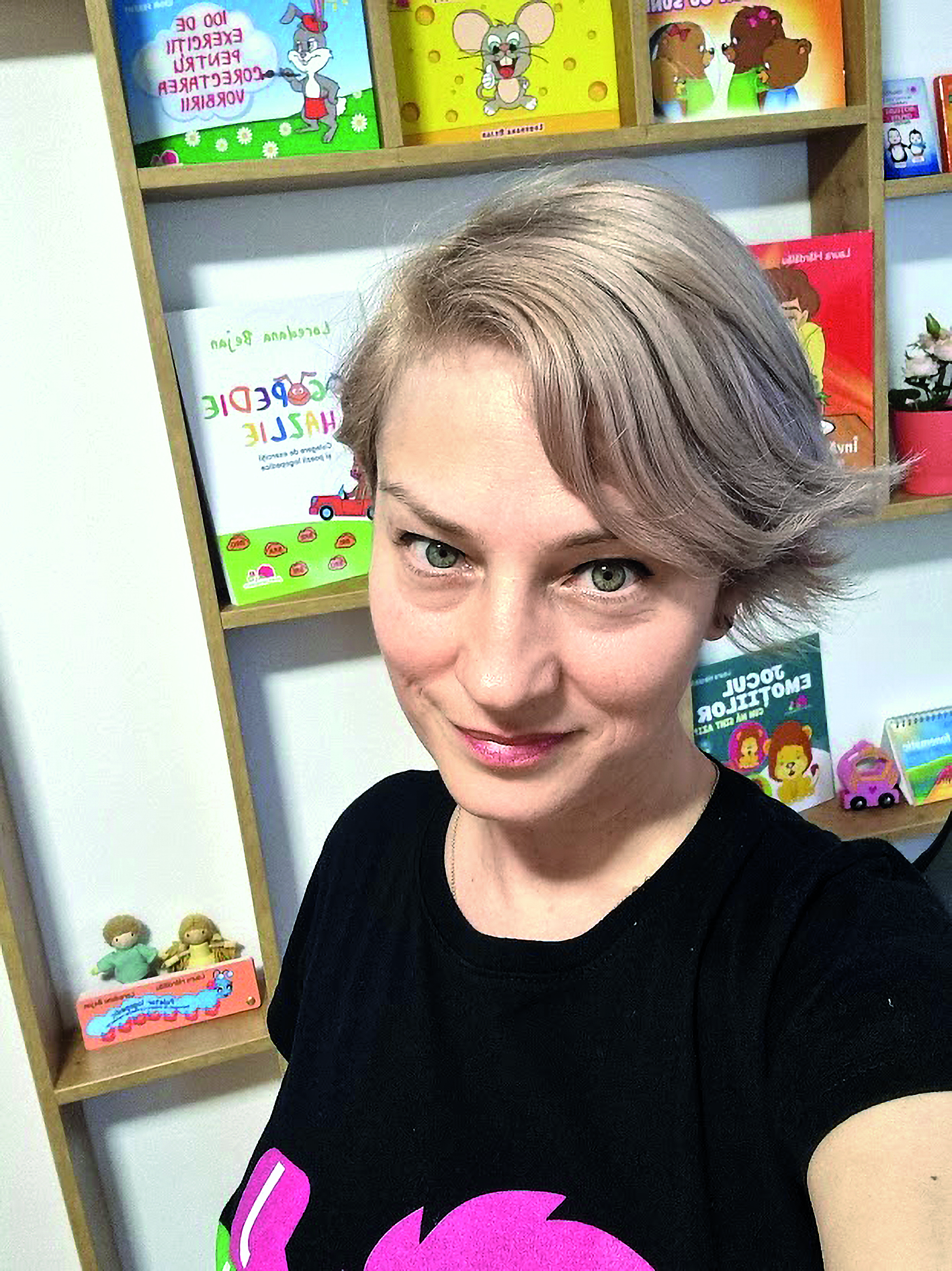 „Pornești de la fișa de lucru, pe care o aduci pe jos, pe covor, când te joci cu copilul. De exemplu, această fișă cu mașinuțele o am deja făcută în format vizual, dar o facem și jos, cu mașinuțele, pe care le împingem. Astfel, realizăm onomatopee și emiterea spontană a sunetului «r». Ei nu simt că lucrează, pentru că totul este o joacă, pe care abia așteaptă să o repete. Și vin cu drag, folosind materialele și jucându-ne cu ele. Avem o serie de jocuri pe care le putem aplica și acasă foarte, foarte ușor”, zice Laura.