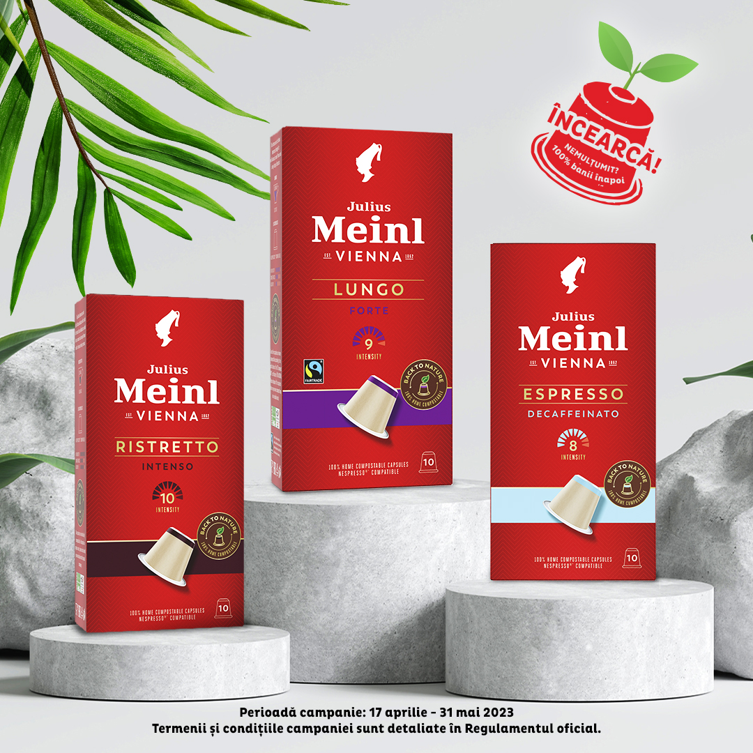 În perioada 17 aprilie – 31 mai 2023, poți savura fără griji orice sortiment de capsule Julius Meinl, pentru că primești banii înapoi dacă nu ești mulțumit.