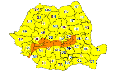 Alerta Cod portocaliu începe vineri la ora 12:00 și se termină la ora 23:00. În Carpații Meridionali și de Curbură, la altitudini de peste 1500 de metri, vântul va avea intensificări susținute, cu rafale de peste 110…130 km/h, zăpada va fi puternic spulberată și vizibilitatea redusă.