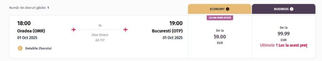 Pe site-ul companiei, un zbor dus-întors de la Oradea la București, programat pe 1 octombrie cu întoarcere pe 3 octombrie costă 99,99 euro. Zborurile vor fi efectuate cu aeronava Airbus A220 care dispune de 137 de locuri.
