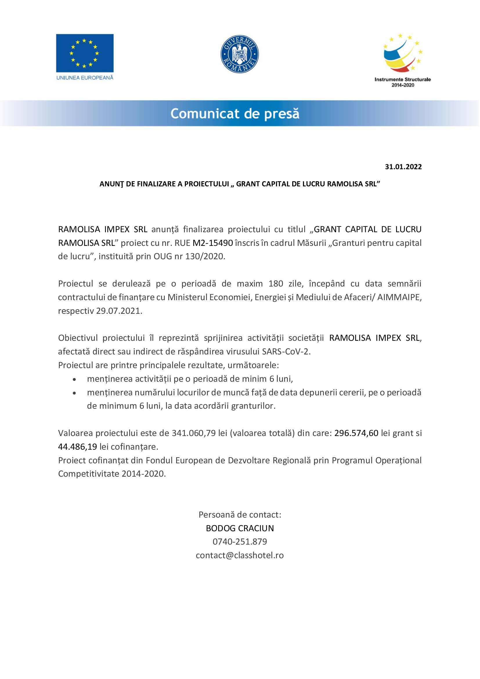 Persoană de contact: BODOG CRACIUN 0740-251.879 contact@classhotel.ro