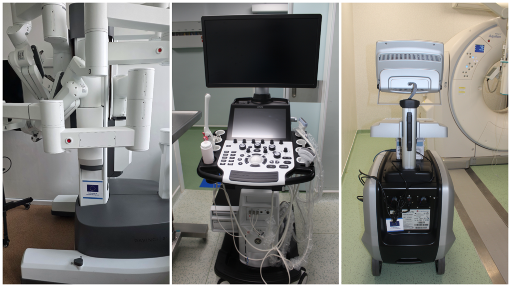 În cadrul lui au fost achiziționate: un turn de laparoscopie cu linie video Full 4K, instrumentar aferent și unitate electrochirurgicală cu ultrasunete și fuziune tisulară, un sistem 3D 4K pentru diagnostic și tratament oncologic, cu marker fluorescent, utilizat în chirurgia clasică și endoscopică, un robot chirurgical DaVinci, cu consumabile pentru realizarea a 250 de proceduri chirurgicale, un ecograf multidisciplinar pentru urologie, un laser pentru urologie, un ecograf intraoperator, un ecograf performant adaptat pentru elastografia țesutului tumoral, o stație de lucru pentru electrochirurgie, dotată cu unitate de coagulare cu argonplasmatic și disector cu jet de apă, un sistem de ablație prin electroporație, cu 25 de proceduri incluse, un sistem de ablație cu microunde, cu 50 de antene compatibile, un sistem de crioablație, o masă de operație, o lampă scialitică cu monitor și un sistem de videomanagement al sălii de operație.