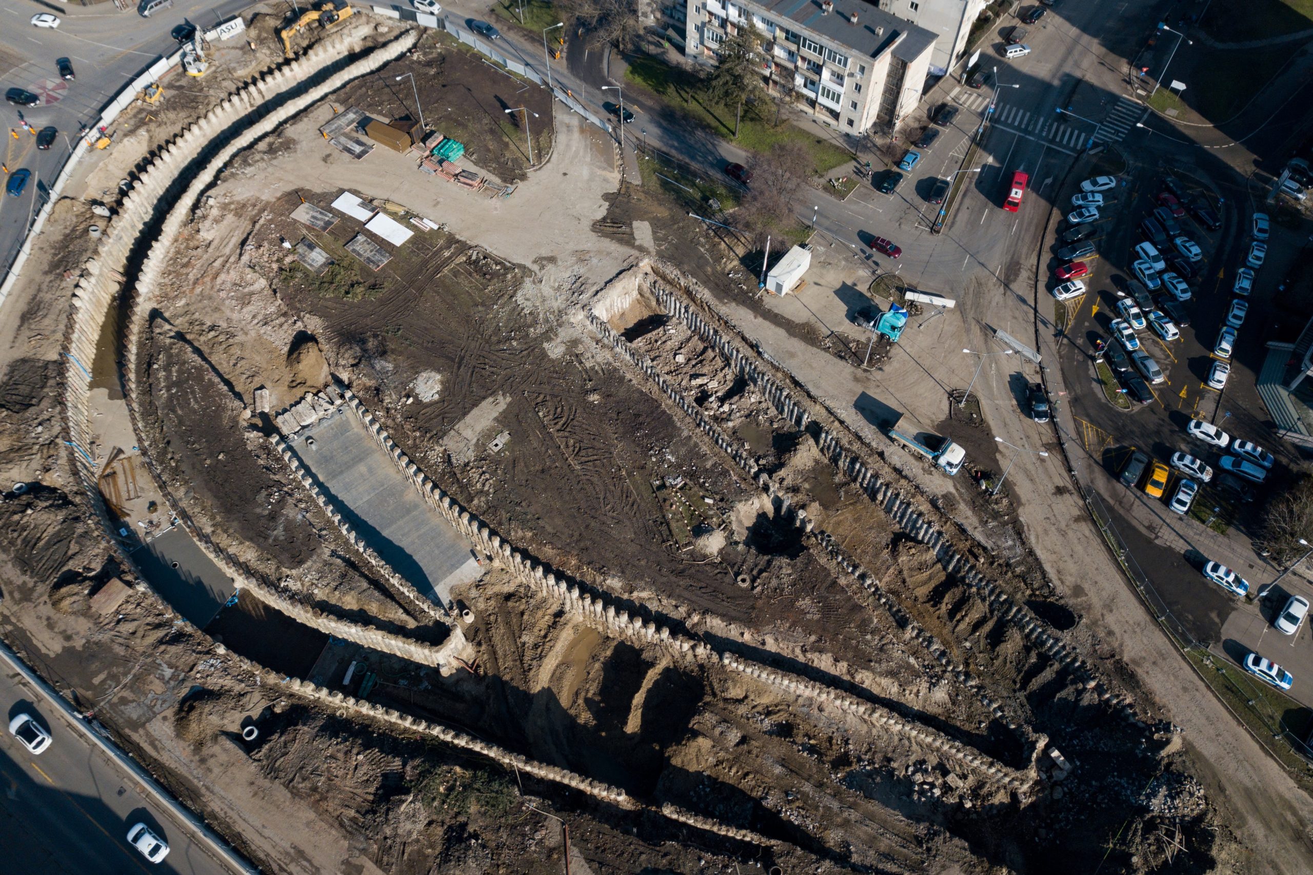Odată cu forarea ultimilor piloți se execută lucrări de deviere a utilităților care se regăsesc pe traseul viitoarelor pasaje (canalizare menajeră, rețele de apă, canalizări pluviale existente, rețele electrice, rețele de fibră optică).