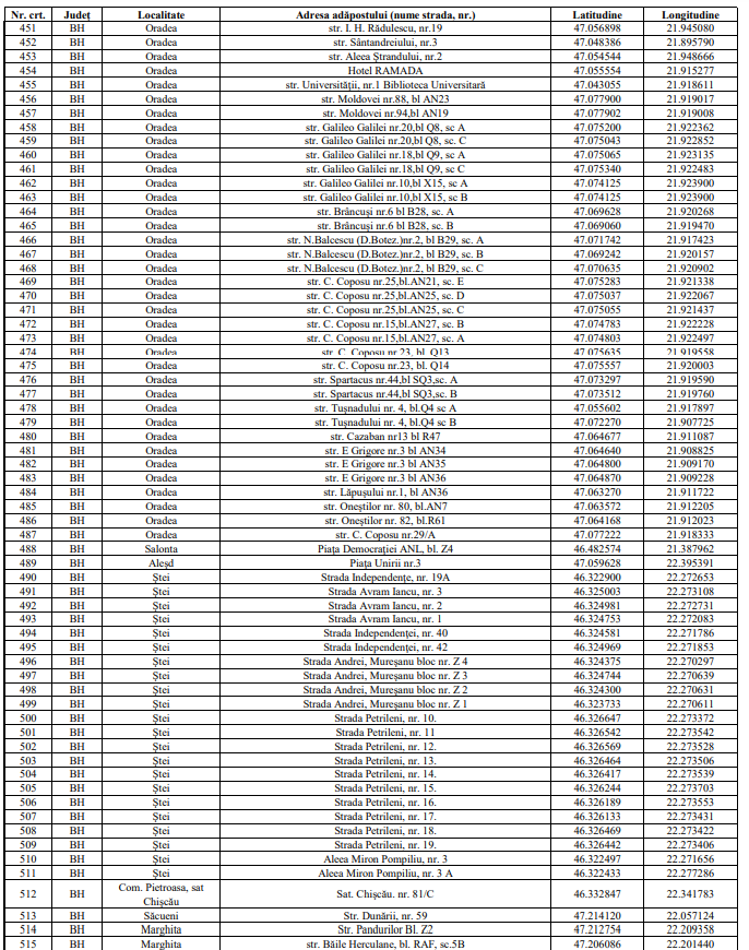 Pe strada Petrileni, de la numărul 10 până la numărul 19 există refugii, dar acestea sunt aglomerate și pe strada Andrei Mureșanu, blocurile Z1, Z2, Z3 și Z4 au toate adăposturi civile. Fostul oraș Dr. Petru Groza e unic în România ca arhitectură, el a fost construit de ruși, de un arhitect din Moscova, și astfel se explică configurația unică formată din străzi lungi și paralele. La Salonta există un singur adăpost în Piața Democrației la blocul ANL Z4, la Aleșd adăpostul e în Piața Unirii nr.3, la Săcueni în strada Dunării nr.59, la Marghita sunt două adăposturi: în str. Pandurilor bl 22 și în Băile Herculane bl RAF sc 5B.