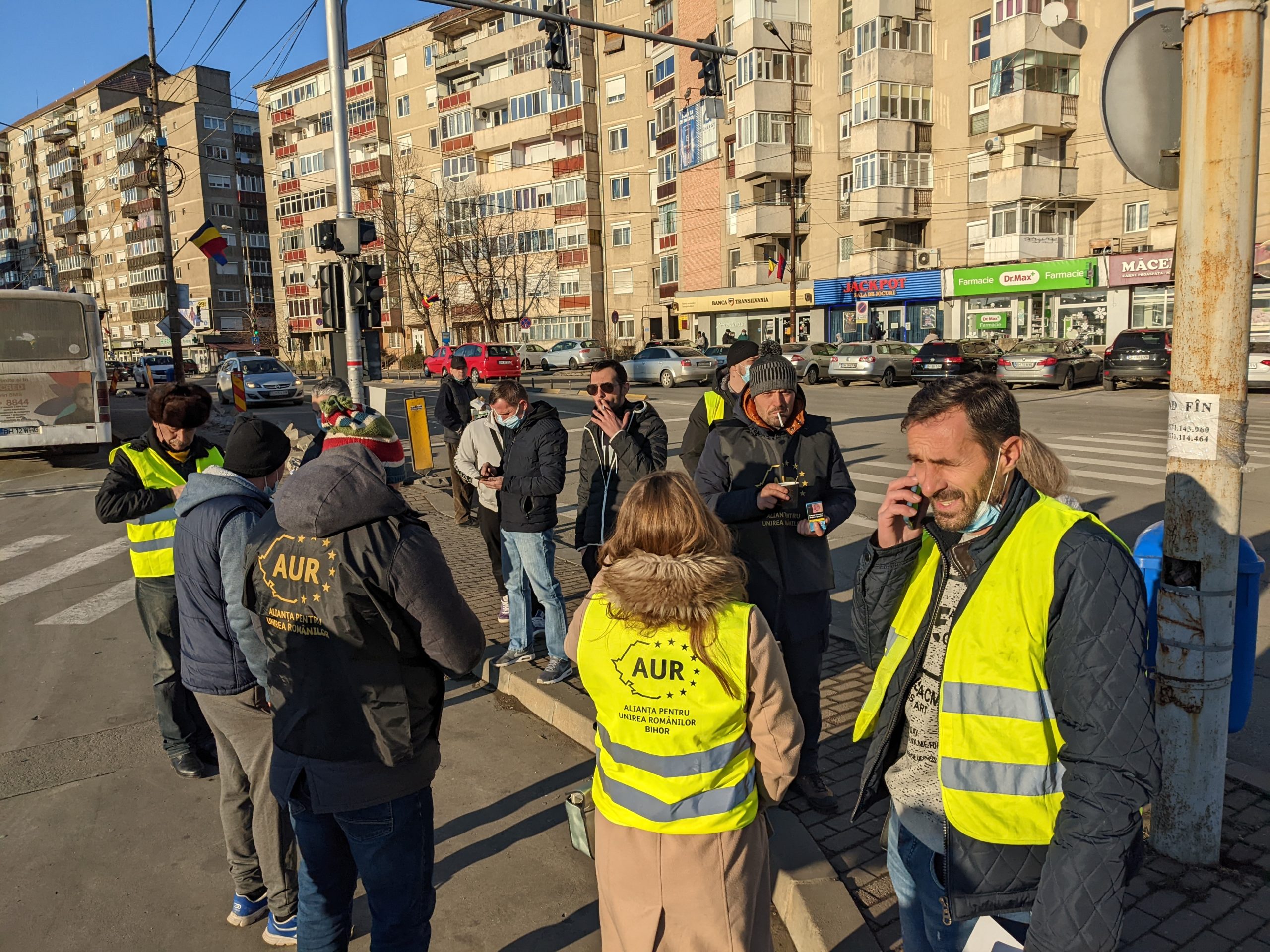 Coordonatorul AUR pentru județul Bihor, profesorul de la LPS, Nelu Pop a atras atenția membrilor partidului să poarte masca deoarece incidența din județ este mare, însă el nu a purtat-o. În plus, a acesta i-a instruit pe colegii săi cum să reacționeze în diferite ipostaze pe care le pot întâlni pe traseu. Chiar dacă nu s-a solicitat autorizație pentru un protest, marșul AUR a fost supravegheat și de un echipaj al Jandarmeriei Bihor.