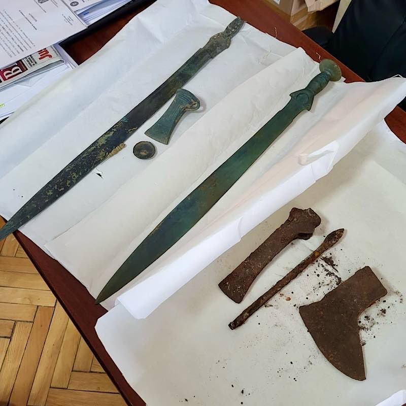 Cei doi au declarat că, în data de 30 decembrie 2025, au predat toate piesele descoperite la Primăria orașului Aleșd. Printre artefacte se află două săbii datând din epoca bronzului, un topor din aceeași perioadă, un ac de podoabă, două topoare din fier, precum și o suliță.