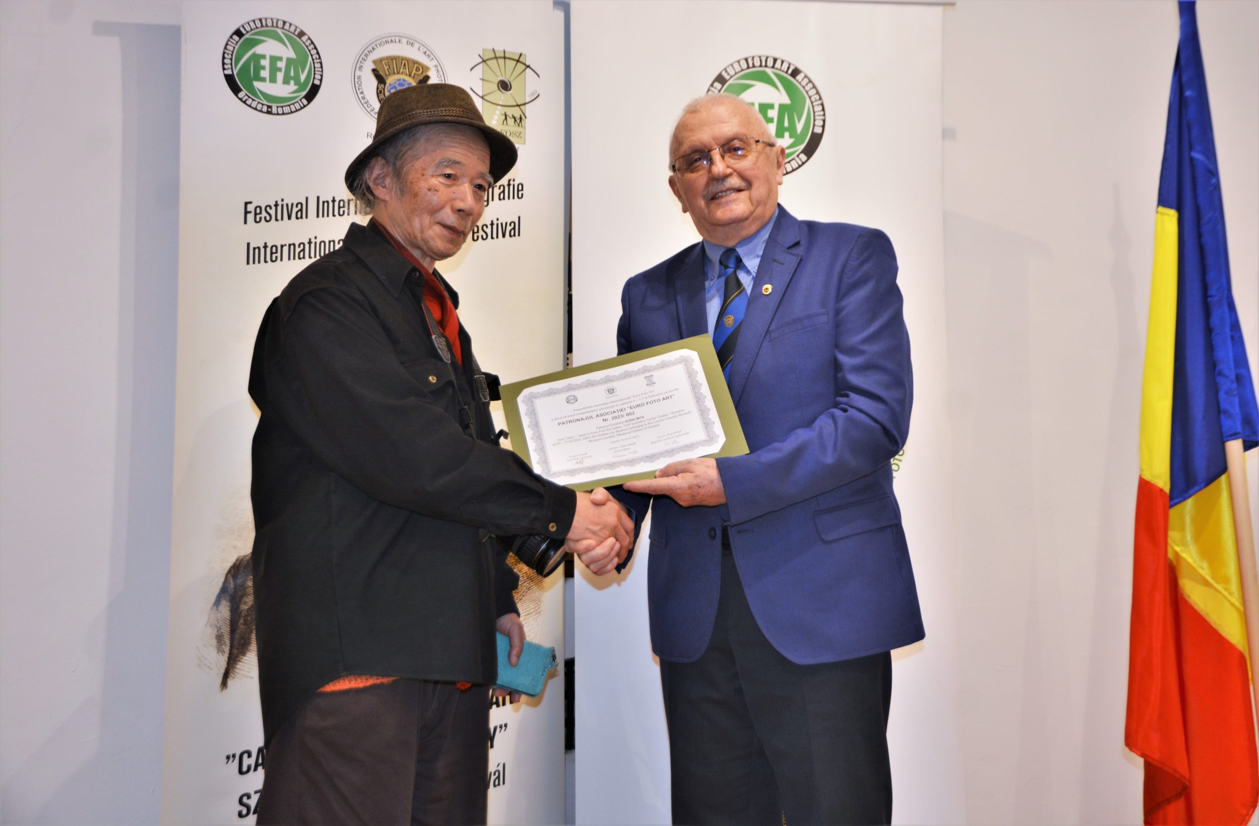 „Pentru mine, în calitate de curator, pregătirea expoziției a însemnat o provocare artistică. Mi-a revenit onoarea să aleg din sute de imagini, fotografiate în mare parte pe film analog, un număr de 72 de fotografii pe care le-am transformat în imagini alb-negru, şi care reprezintă o lume de vis a României, Maramureşul”, a spus Ștefan Tóth , care la final i-a înmânat artistului fotograf japonez Certificatul de patronaj al asociației internaționale.