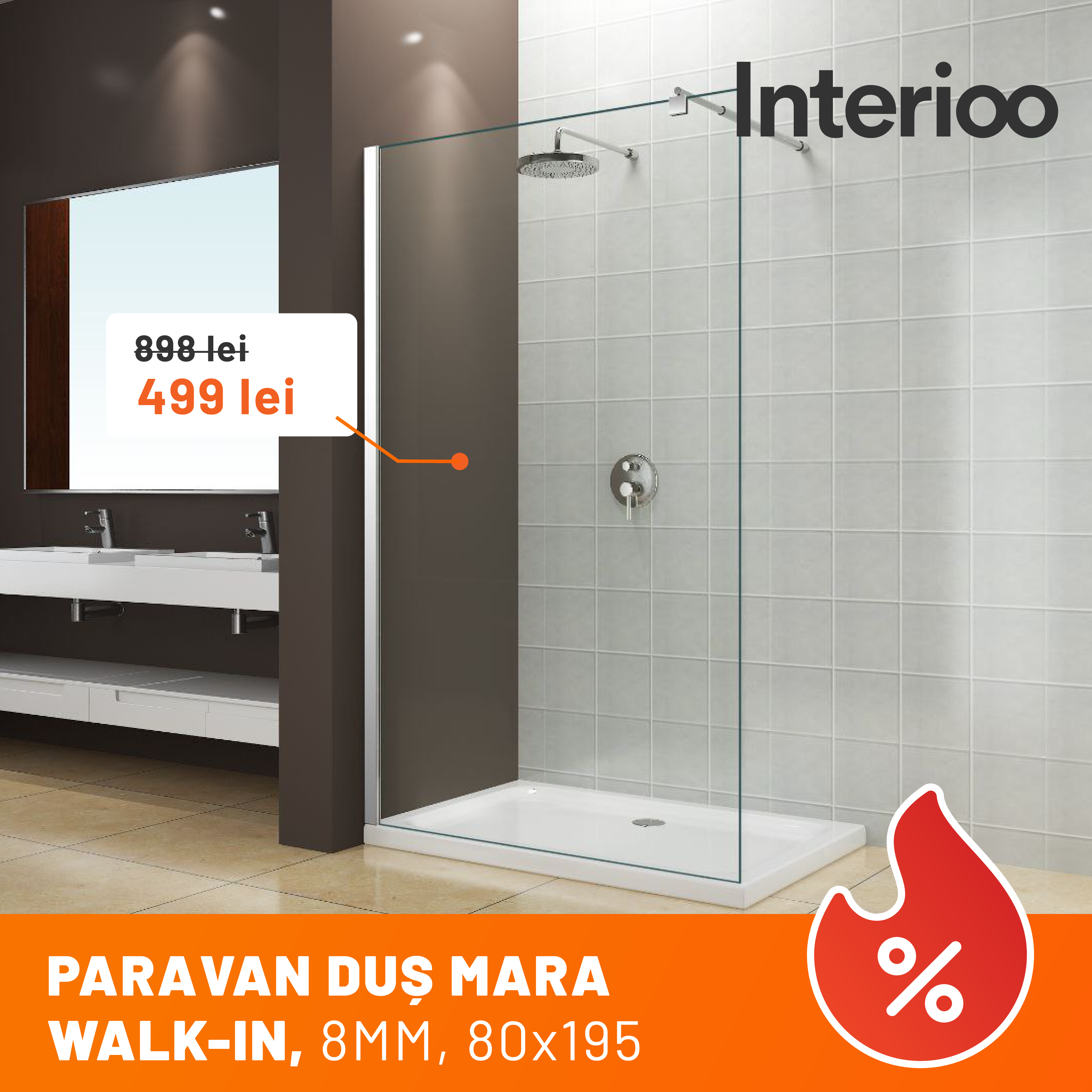 PARAVAN DUȘ WALK-IN, 8MM, 80×195 – Adaugă un strop de rafinament cu acest paravan de duș elegant, la un preț incredibil de 499 lei.