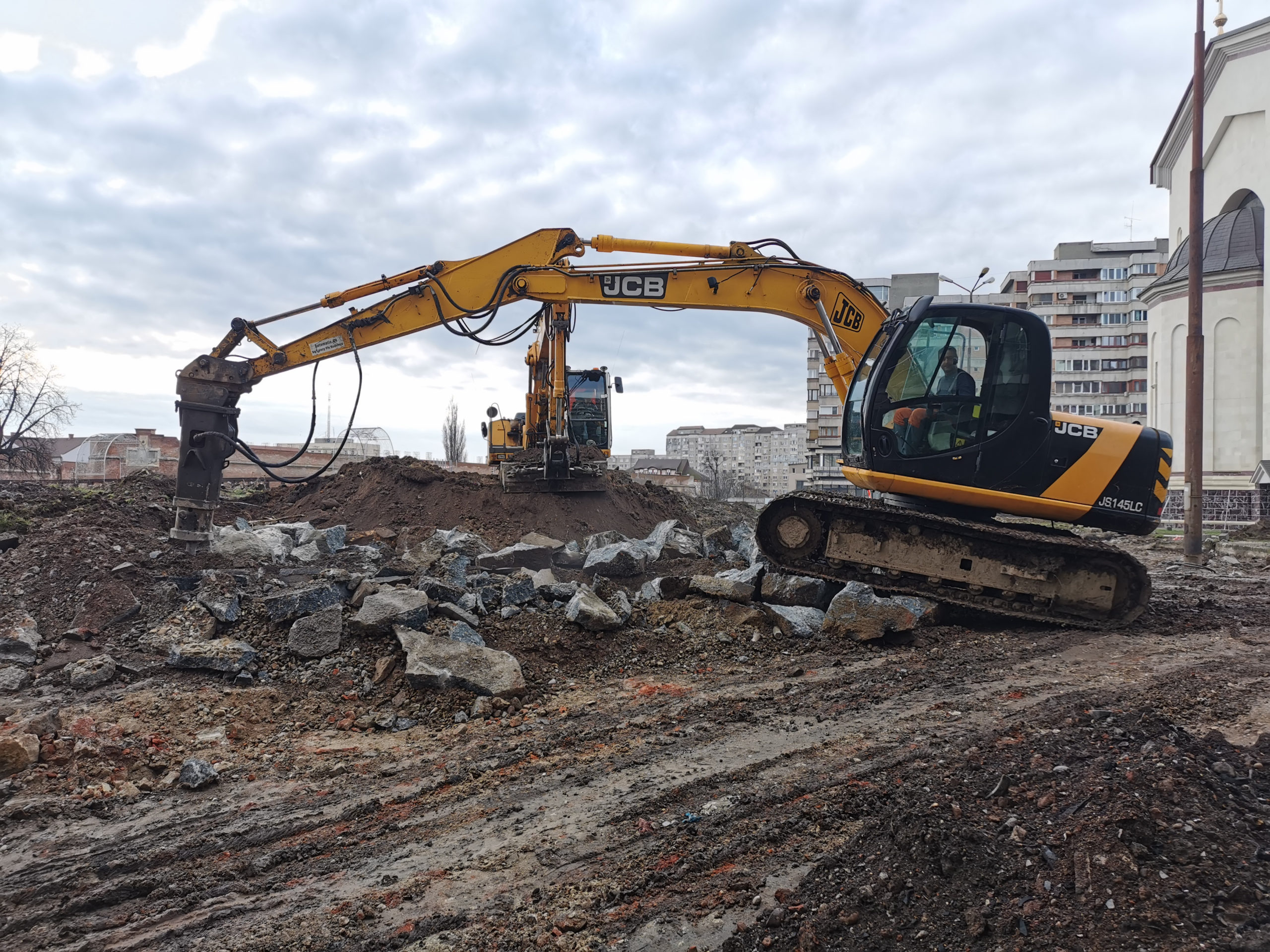 Iar unii meseriasi care deserveau utilaje din alea gen … excavator cu picon, astia deci le mai faceau atente pe mamicile tinere cu copilasi mici care treceau pe zona.