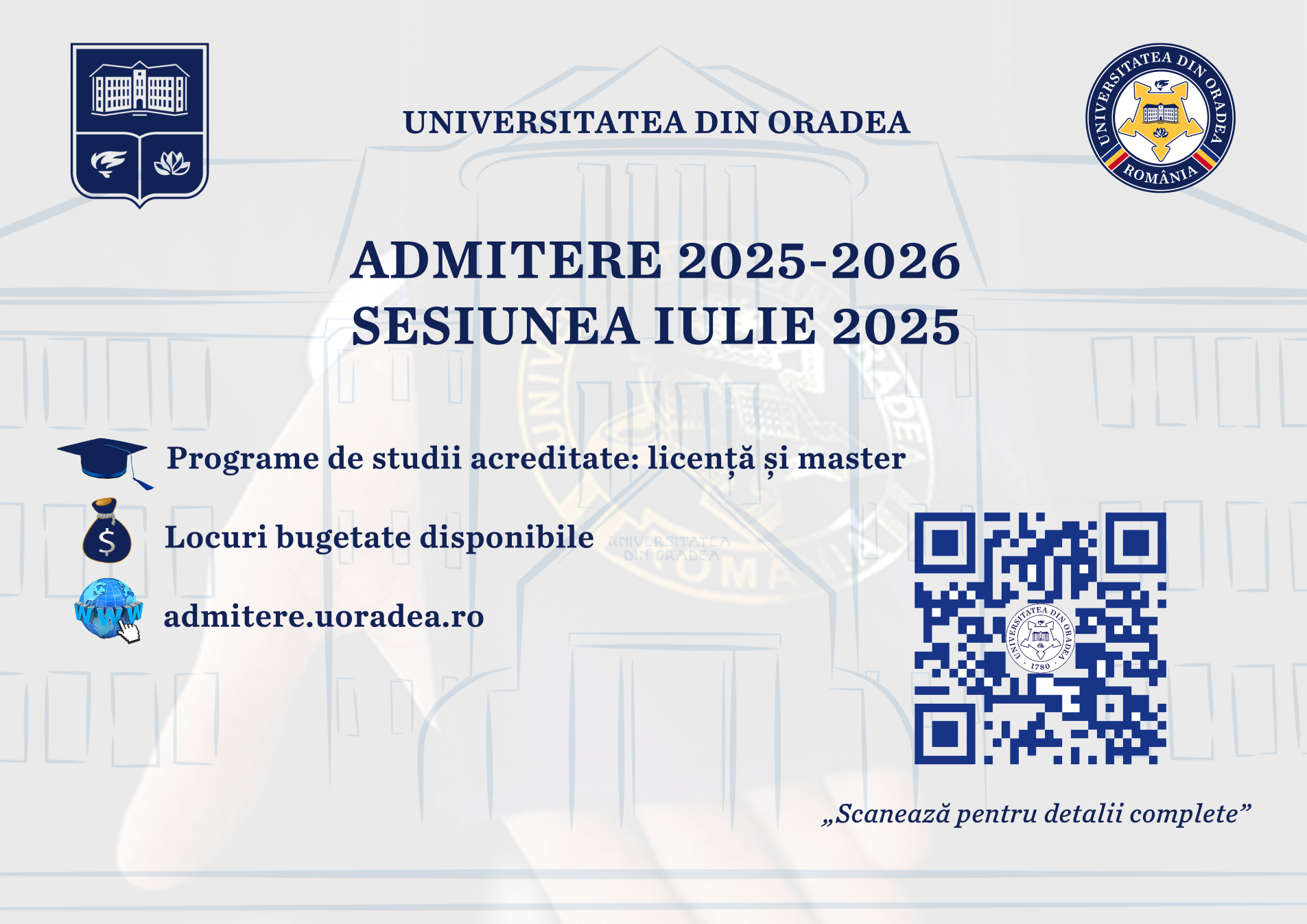 Pentru mai multe informații, candidații sunt invitați să acceseze site-ul oficial al Universității din Oradea: www.uoradea.ro, butonul admitere.