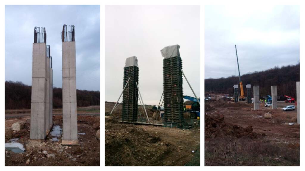 Sunt forați și turnați toți piloții pe care se vor ridica elevațiile ce vor susține grinzile. 4 elevații, așa cum se vede din imagini, sunt realizate. Constructorii lucrează la realizarea armăturilor, la cofraje și la turnarea betoanelor. Înălțimea maximă a acestui viaduct va fi de 10 metri.